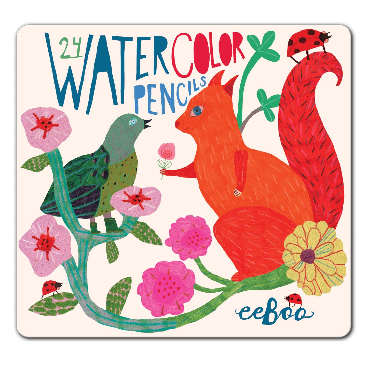 Get an easy introduction to working with watercolors with this versatile set of eeBoo watercolor pencils. Color in an area with the pencil, then brush over it with water to create a watercolor effect. You can mix layers of colors and create different wash effects. Tin box has a charming watercolor illustration by Monika Forsberg.