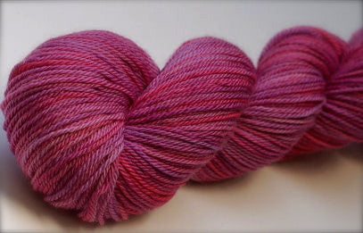 Azalea Orchid is one of Three Irish Girls' Frosted Solids. Frosted Solid indicates that the yarn has a semi-solid effect achieved by layering or "frosting" colors on top of each other.