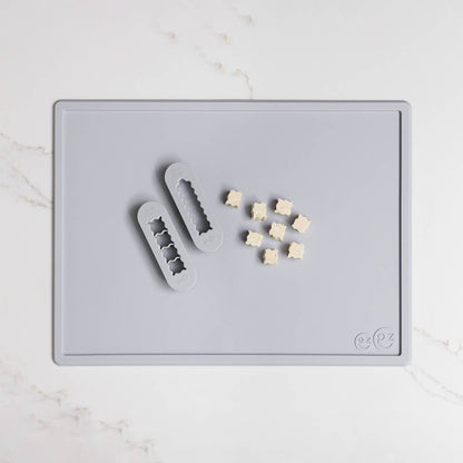 The ezpz food cutters make baby-led weaning food prep ezpz! Start with the food cutter for food strips (6m+) to promote the palmar grasp. At 9m+ layer in the cubed food cutter to promote the pincer grasp.