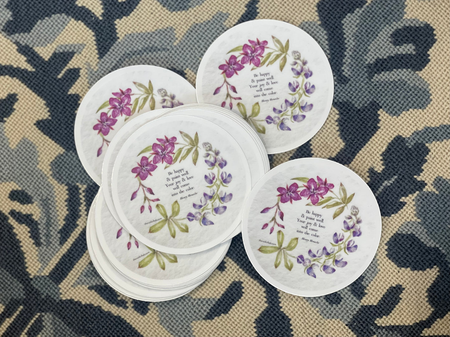 “Be Happy & Paint Well” Wildflower Wreath Sticker