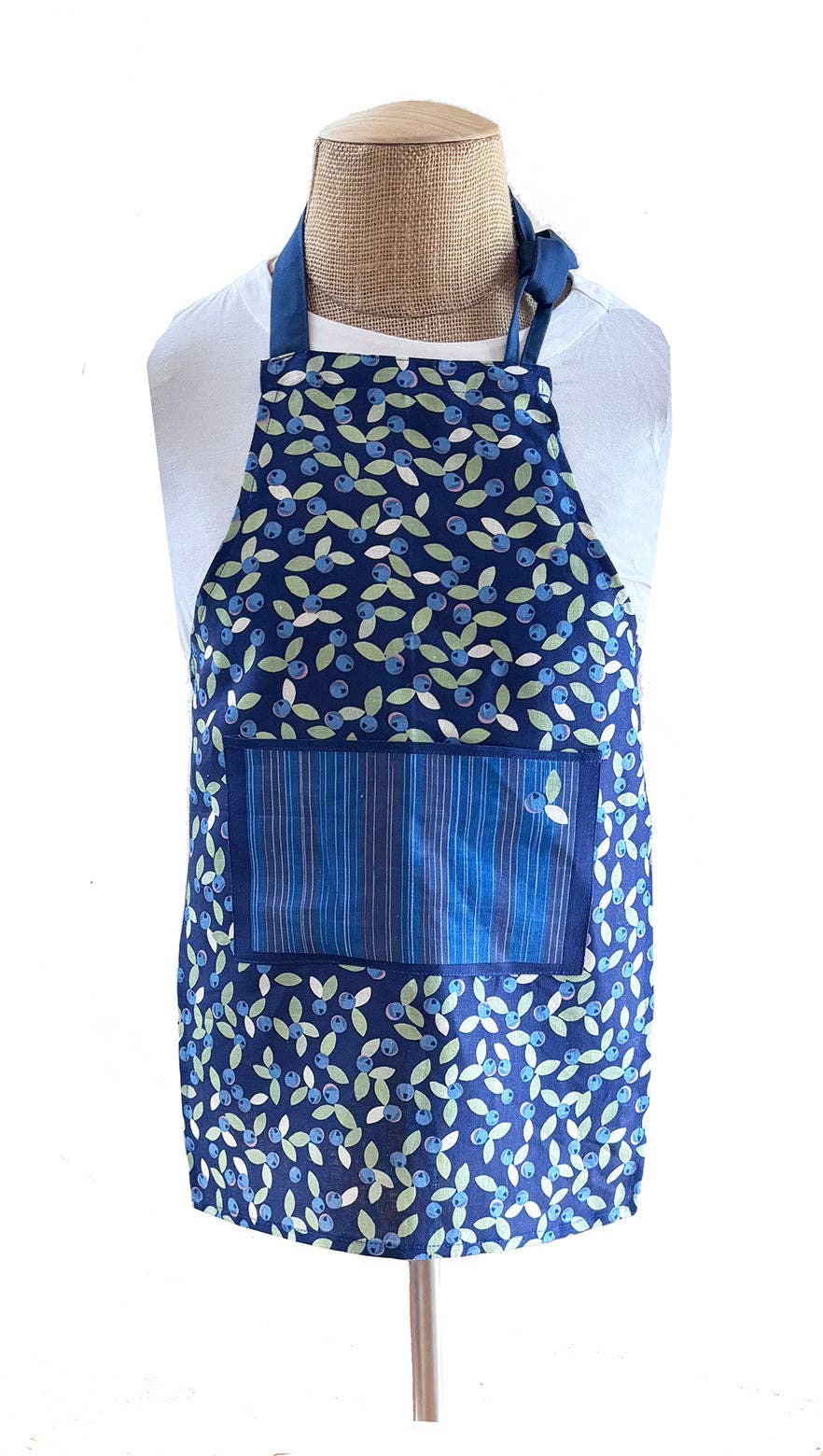 Our 100% linen aprons feature a generous front pocket with cotton trim. . Great for the kitchen, farmers’ market, or working the local bake sale. A charming matching set for adult/child. The Berry Good Day patterns are inspired by a favorite summer outing. •