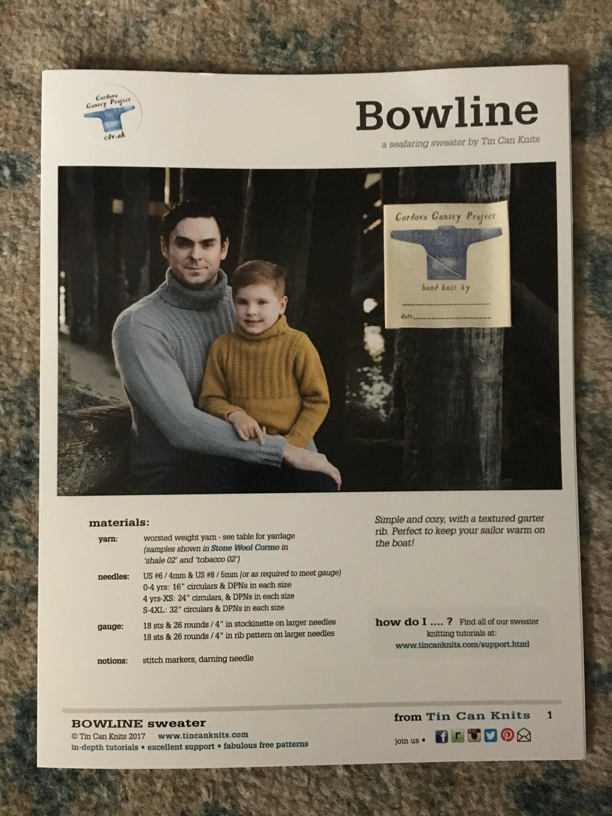 Bowline Sweater Pattern with Cordova Gansey Project Canvas Label