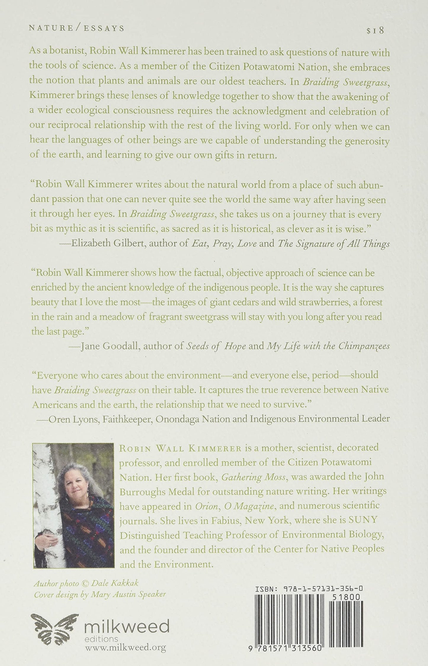 Drawing on her life as an indigenous scientist, and as a woman, Kimmerer shows how other living beings―asters and goldenrod, strawberries and squash, salamanders, algae, and sweetgrass―offer us gifts and lessons, even if we've forgotten how to hear their voices. In reflections that range from the creation of Turtle Island to the forces that threaten its flourishing today, she circles toward a central argument: that the awakening of ecological consciousness requires the acknowledgment and celebration of our reciprocal relationship with the rest of the living world. For only when we can hear the languages of other beings will we be capable of understanding the generosity of the earth, and learn to give our own gifts in return.