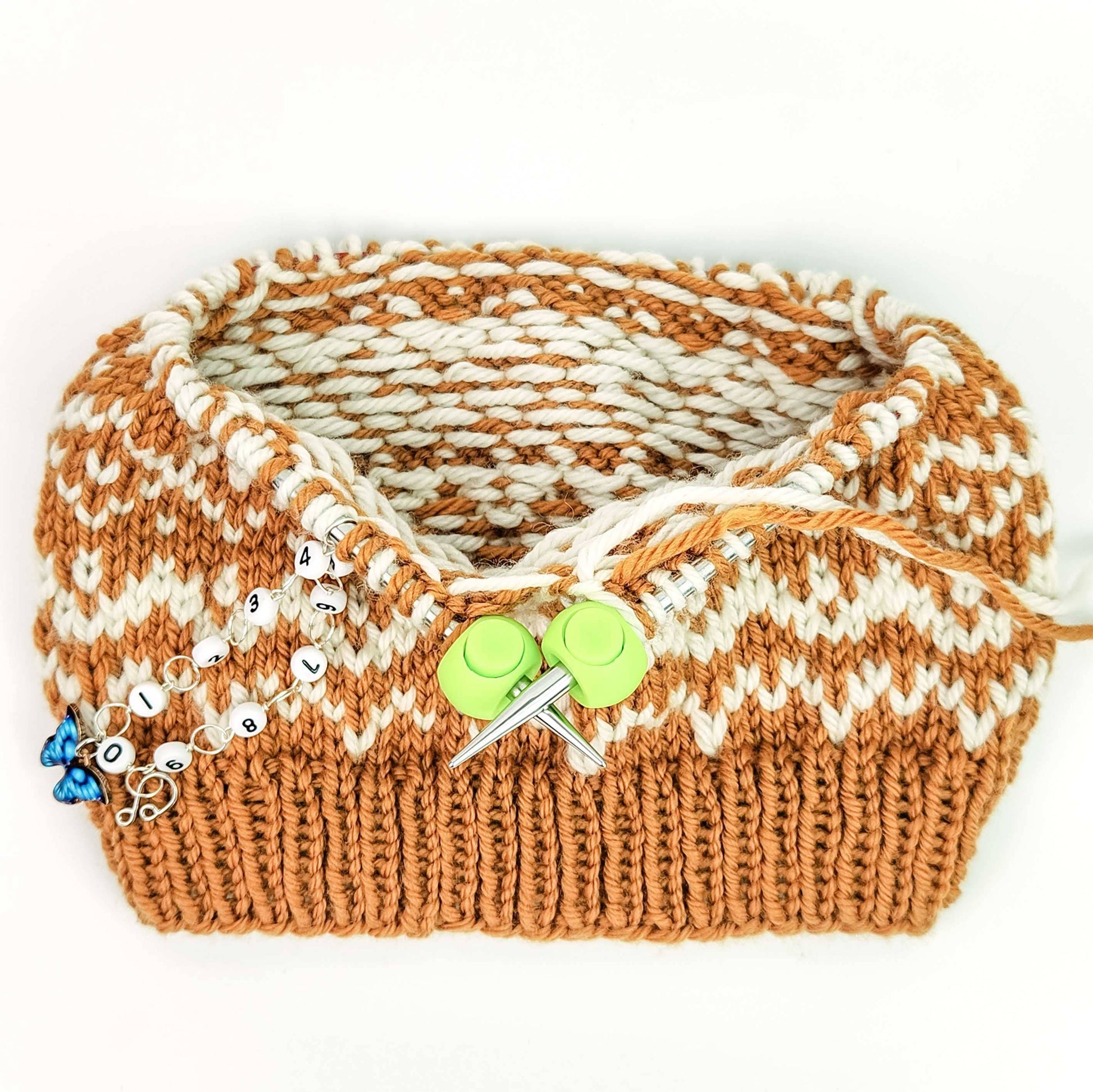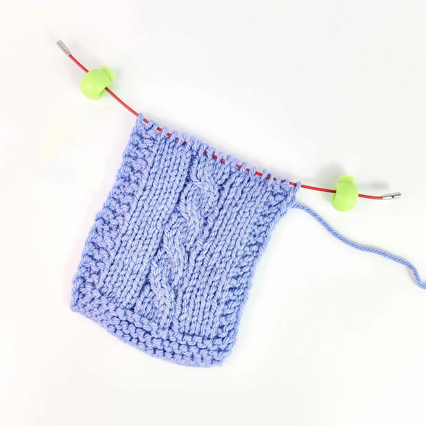 Slide one onto the middle of your cable and keep your stitches close to your needle tip on those large projects and long circular needles.