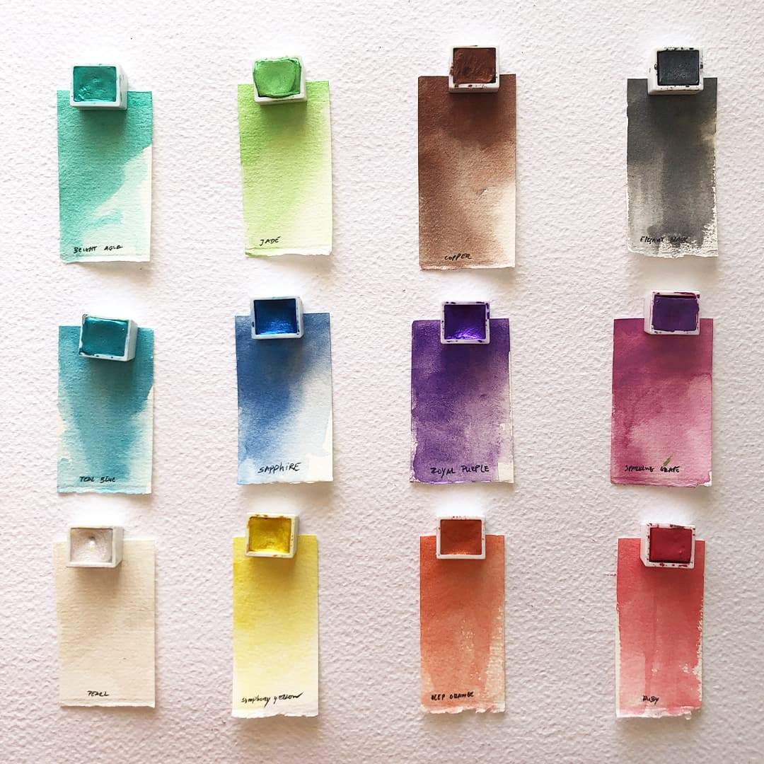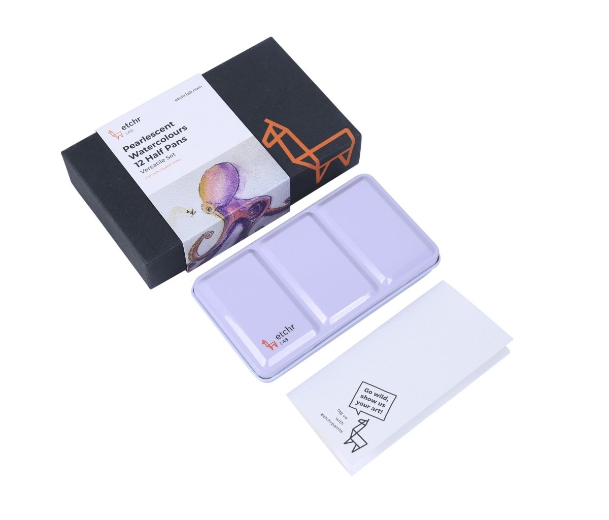 Etchr Pearlescent Watercolours: Versatile 12 Half Pan Set