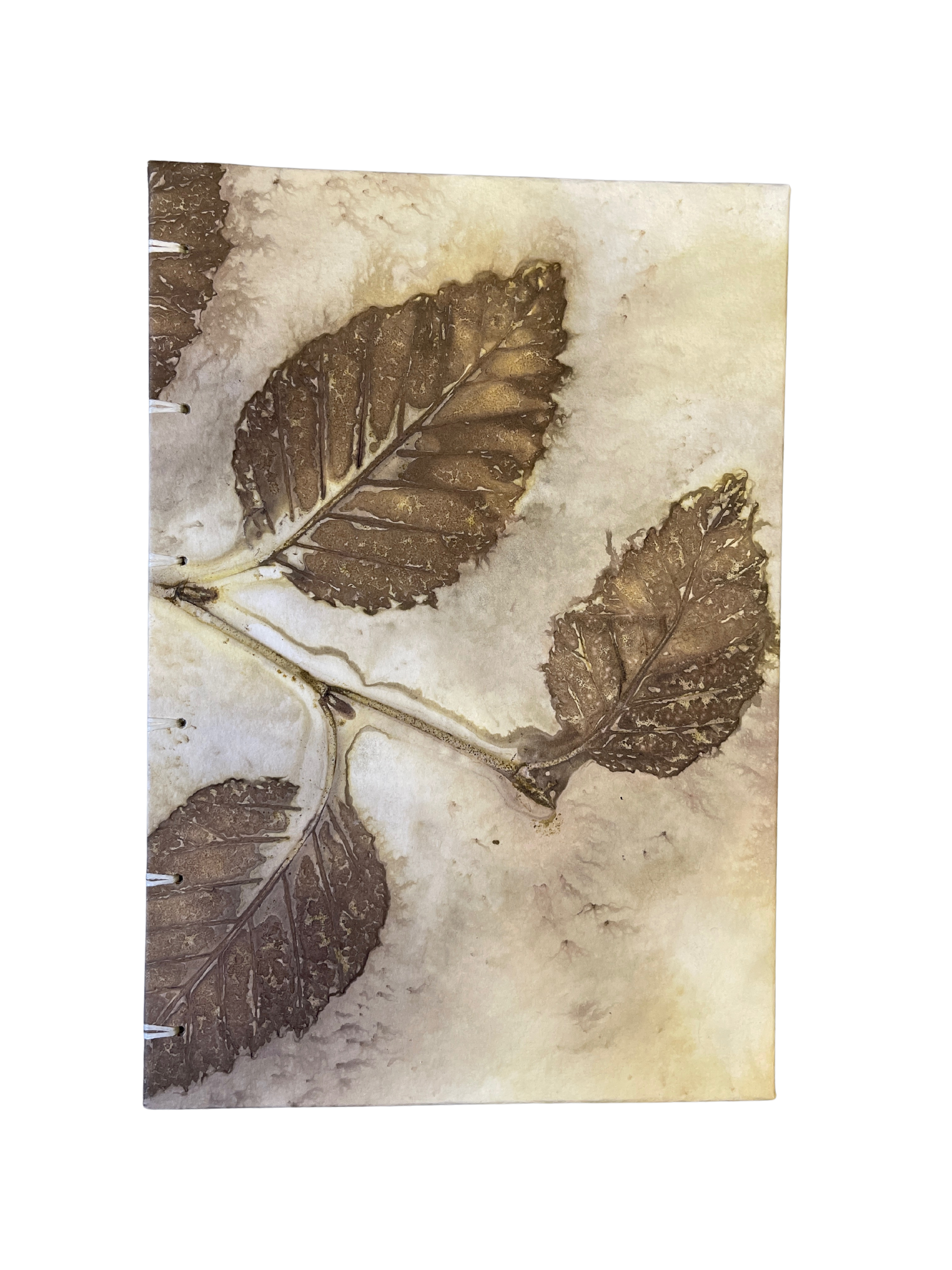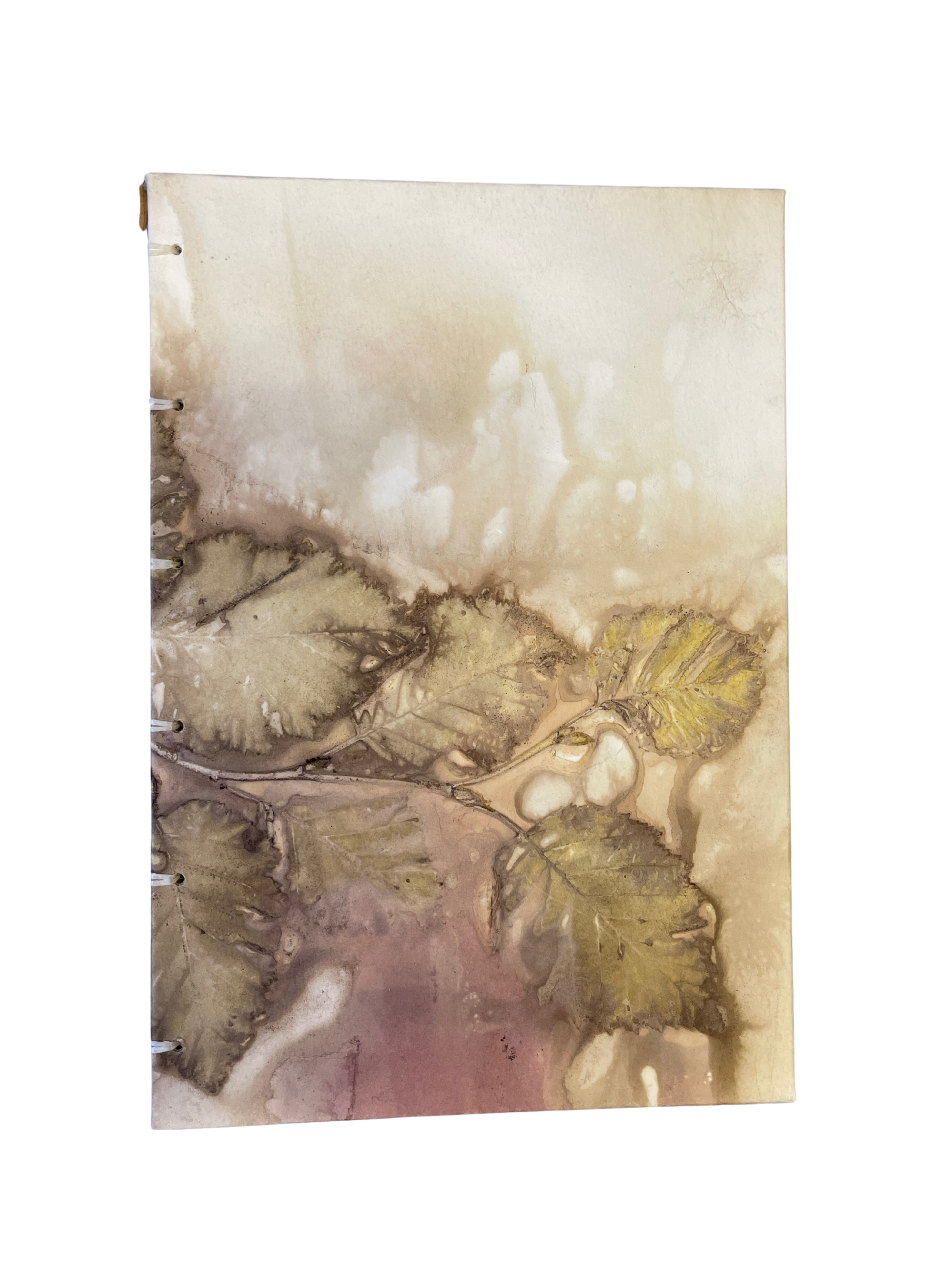 Sketchbooks are handcrafted by Tanya Zastrow with care and attention to detail using high-quality materials and traditional bookbinding techniques. Each book cover is an original ecoprint made using leaves from Cordova with a mix of natural dyes. The process is eco-friendly and unrepeatable, making each print unique and the book one-of-a-kind. Coptic stitch journals lay flat when open for easy writing and illustration.