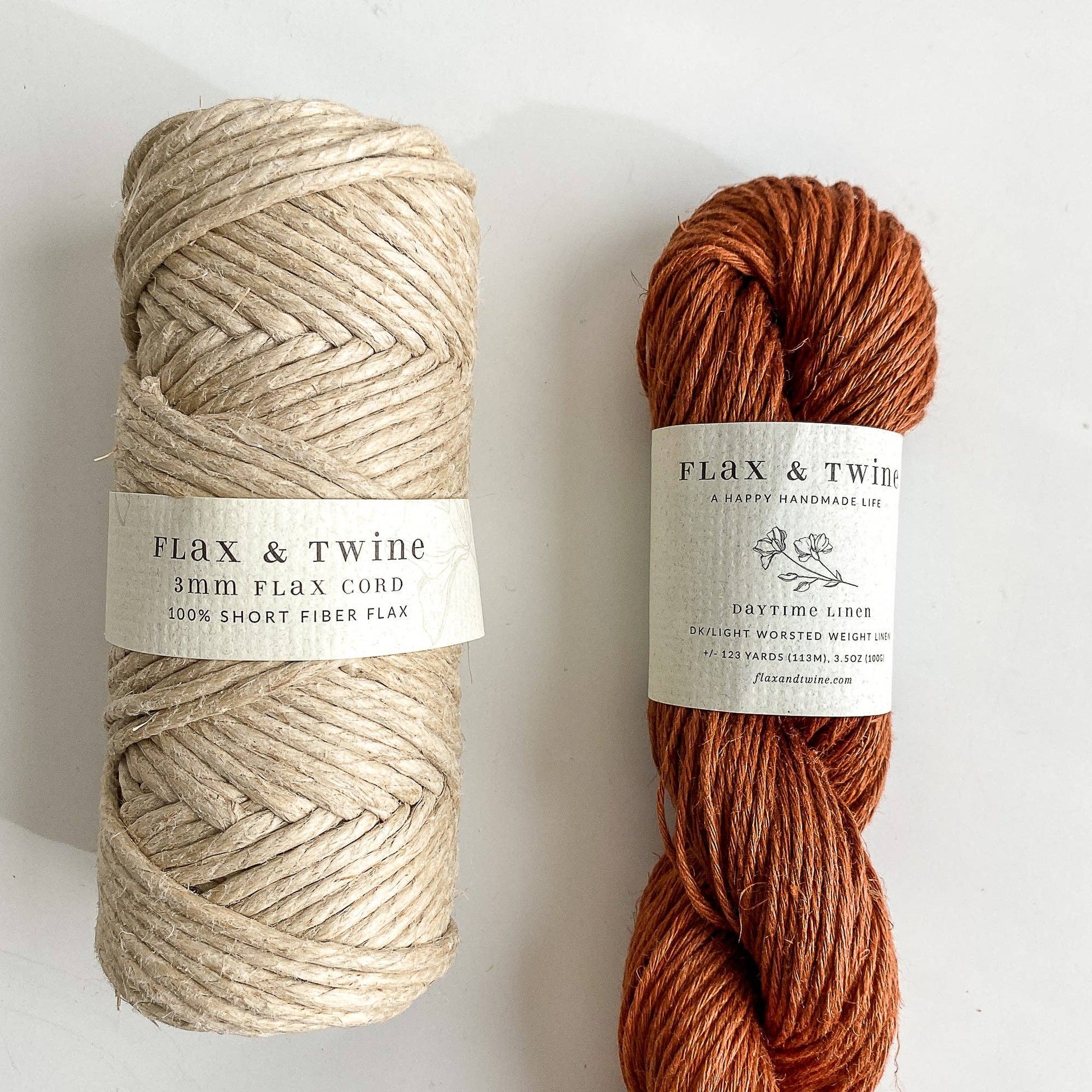 Each kit makes 5 jewelry dishes! Measures 5" x 1" high (adjustable). Kit includes: :: Coiled Jewelry Dish Pattern & Video :: 1 spool Flax & Twine 3mm Flax Cord :: 1 skein of Flax & Twine Daytime Linen DK/Light Worsted Weight :: Sharp Needle :: Japanese-Style Clippers