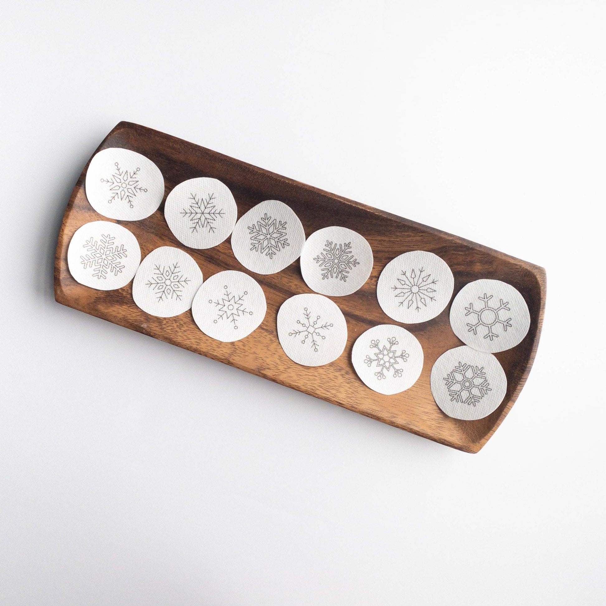 𝑷𝒓𝒆-𝑷𝒓𝒊𝒏𝒕𝒆𝒅, 𝑹𝒆𝒂𝒅𝒚-𝒕𝒐-𝑺𝒕𝒊𝒕𝒄𝒉 𝑬𝒎𝒃𝒓𝒐𝒊𝒅𝒆𝒓𝒚 𝑷𝒂𝒕𝒕𝒆𝒓𝒏𝒔 This pack of 12 mini single-use snowflake embroidery designs are printed on adhesive-backed, water-soluble transfer paper then trimmed by hand into small patches that can be applied to almost any fabric.