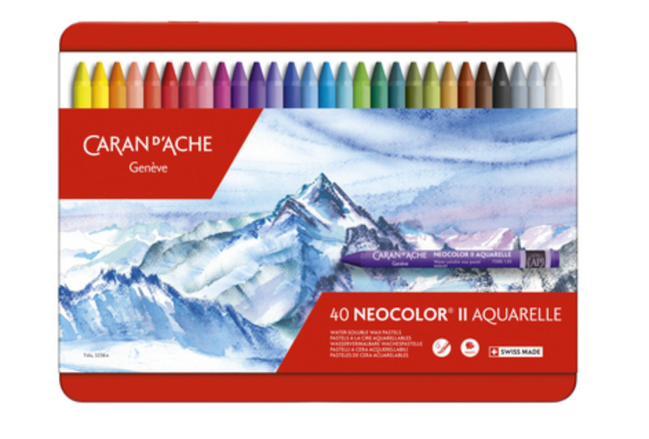 CARAN DACHE NEOCOLOR II PASTEL 40 COLOUR METAL BOX SET