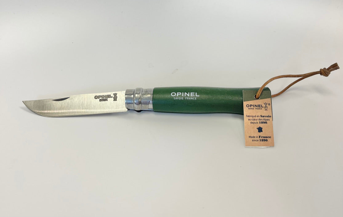 THE most iconic size, the No.08, is the knife that started it all. Dating all the way back to 1890 when Joseph Opinel created a simple yet robust tool for the everyman, the No.08 has been featured in countless museums, books and galleries around the world. Whether you’re looking to sharpen your pencils, or prune your roses, the No. 08 has been a favorite of explorers, artists, farmers, and chefs alike. The colorama line features tinted and varnished hornbeam handles in a range of colors and comes equipped with a convenient lanyard you can easily attach to your bag, so you're never without an Opinel! This size features the Virobloc® safety ring.