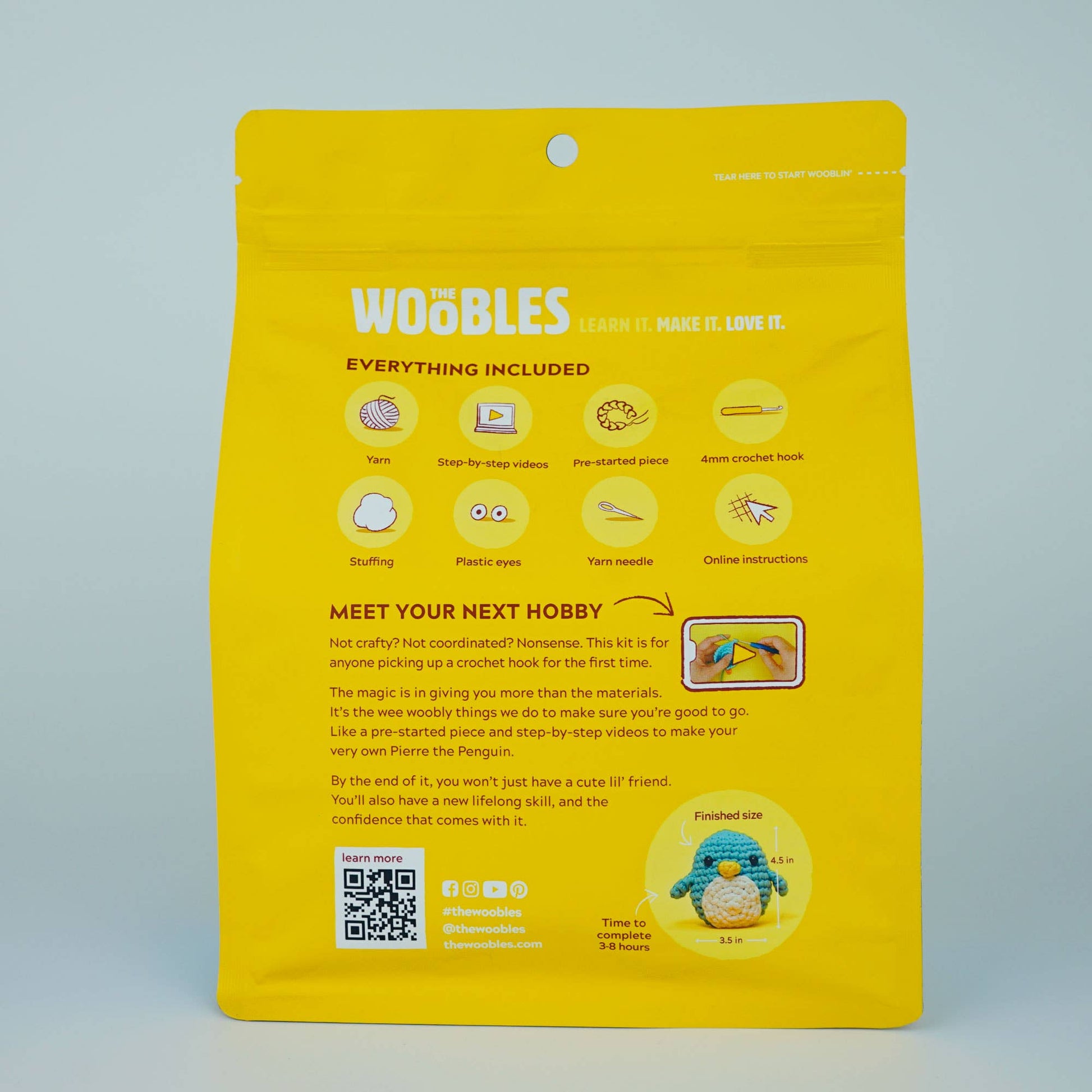 Introducing Pierre the Penguin - The Woobles Penguin Crochet Kit. The Woobles Penguin Crochet Kit is perfect for beginners! The kit includes all the materials you need, plus step-by-step video tutorials that expertly guide you through each stitch and technique that matches the kit in your hands. These tutorials are designed to take the stress out of starting your project and make it easy for new crafters to dive straight into the fun.