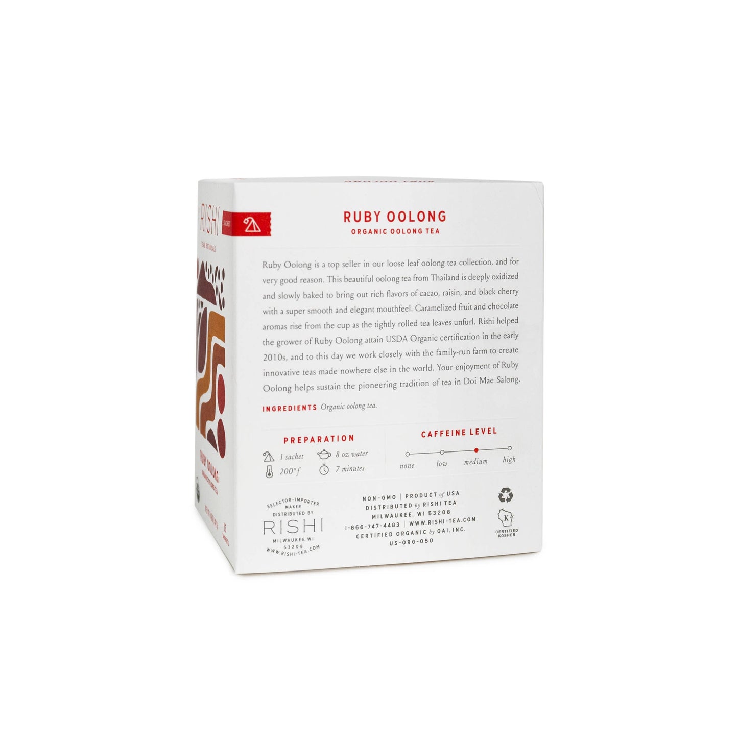 Ruby Oolong is a top seller in our loose leaf oolong tea collection, and for very good reason. This beautiful oolong tea from Thailand is deeply oxidized and slowly baked to bring out rich flavors of cacao, raisin, and black cherry with a super smooth and elegant mouthfeel. Caramelized fruit and chocolate aromas rise from the cup as the tightly rolled tea leaves unfurl. Rishi helped the grower of Ruby Oolong attain USDA Organic certification in the early 2010s, and to this day we work closely with the family-run farm to create innovative teas made nowhere else in the world. Your enjoyment of Ruby Oolong helps sustain the pioneering tradition of tea in Doi Mae Salong.