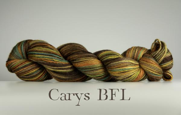 Carys BFL (pronounced cah-RISS) is a smooth, evenly plied worsted weight yarn from the Blue Faced Leicester breed of sheep. Its long staple lenth resists pilling better than other fine wools.