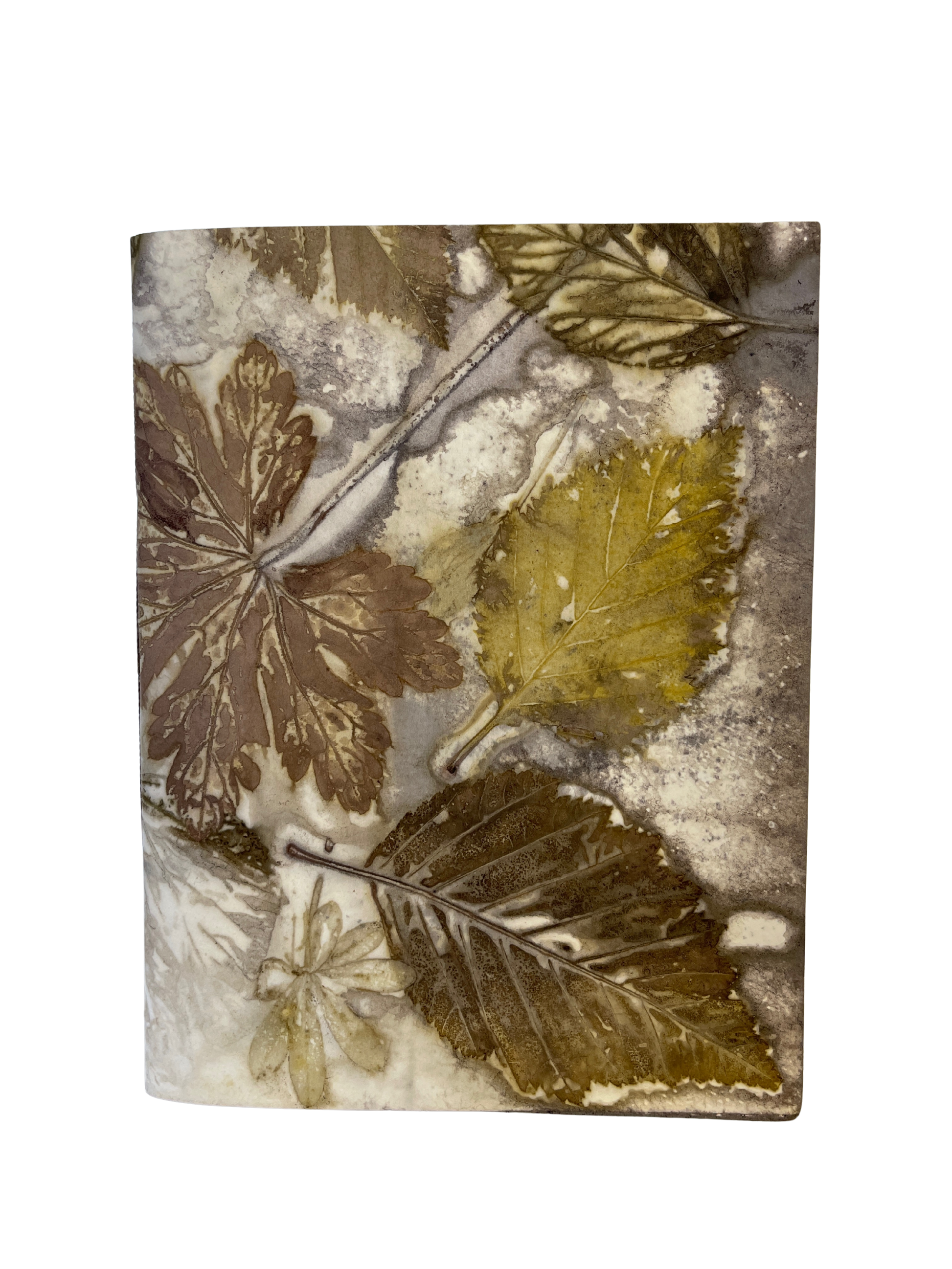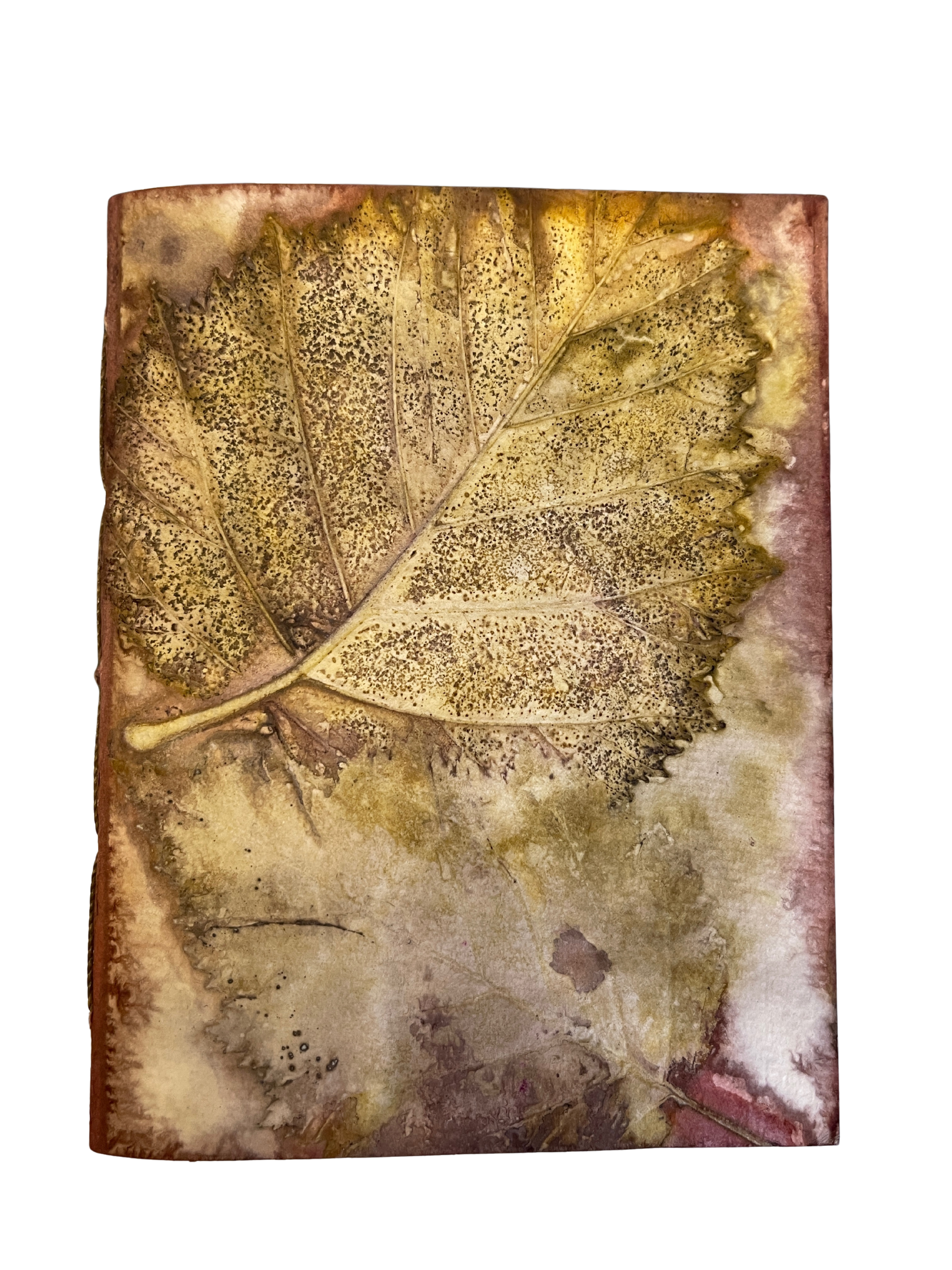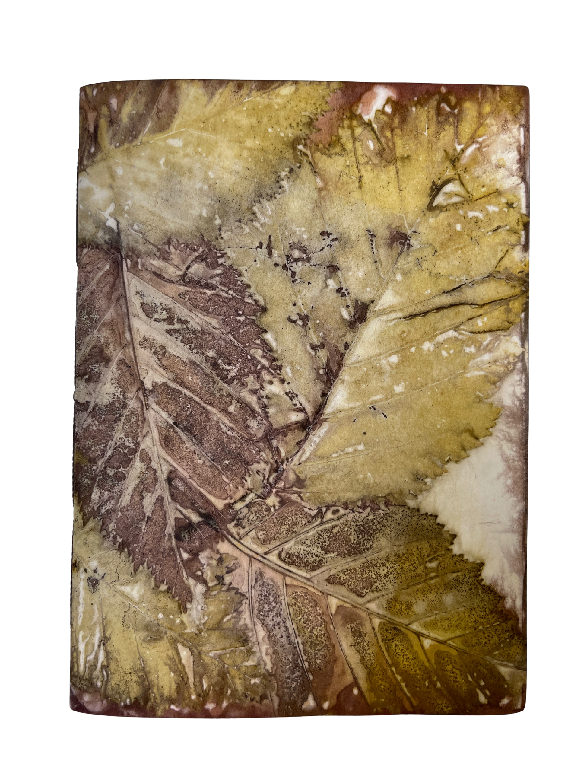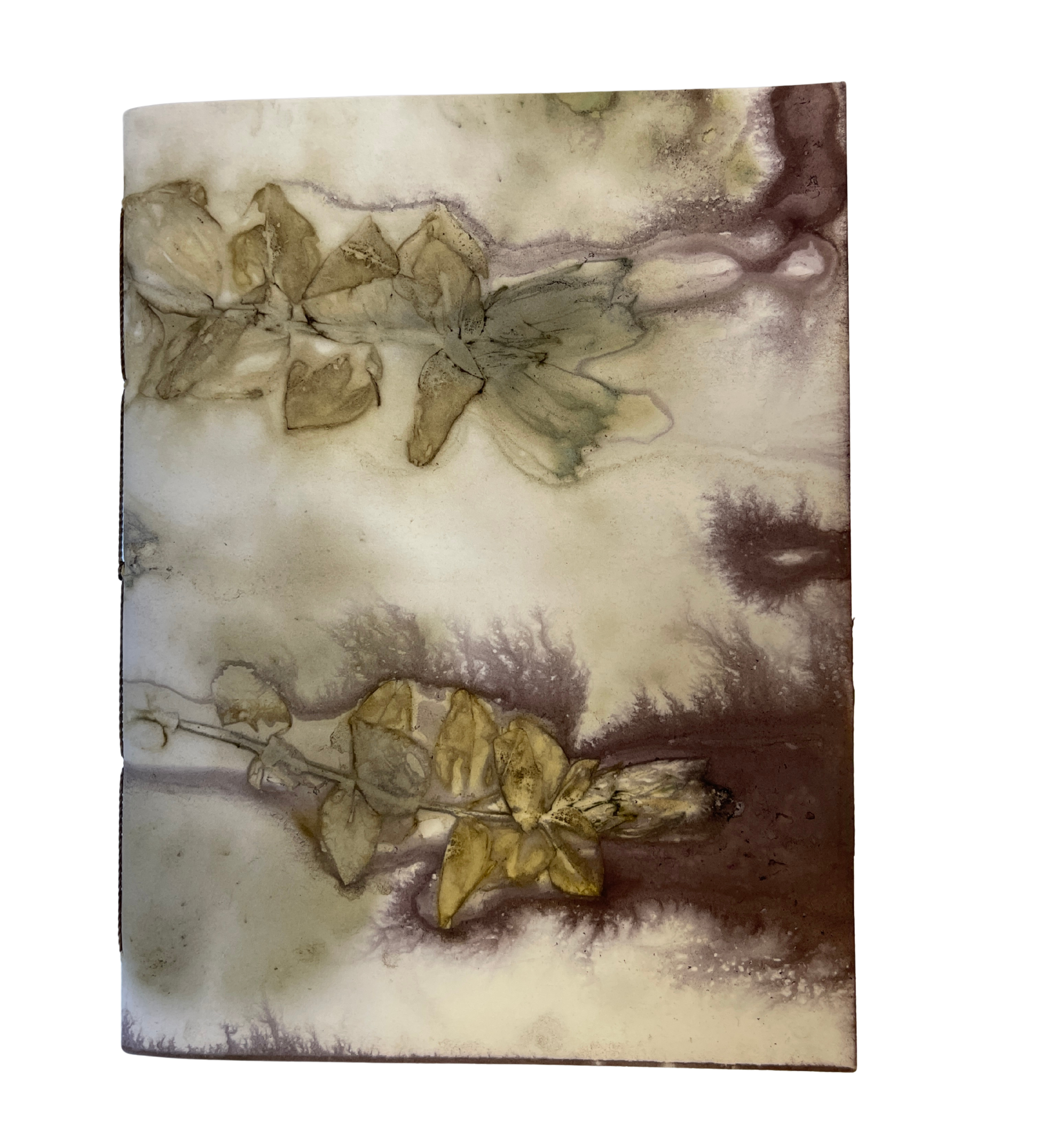 Each book cover is an original ecoprint using leaves from Cordova with a mix of natural dyes. The process is eco-friendly and unrepeatable, making each print unique and the book one-of-a-kind. Coptic stitch journals lay flat when open for easy writing.