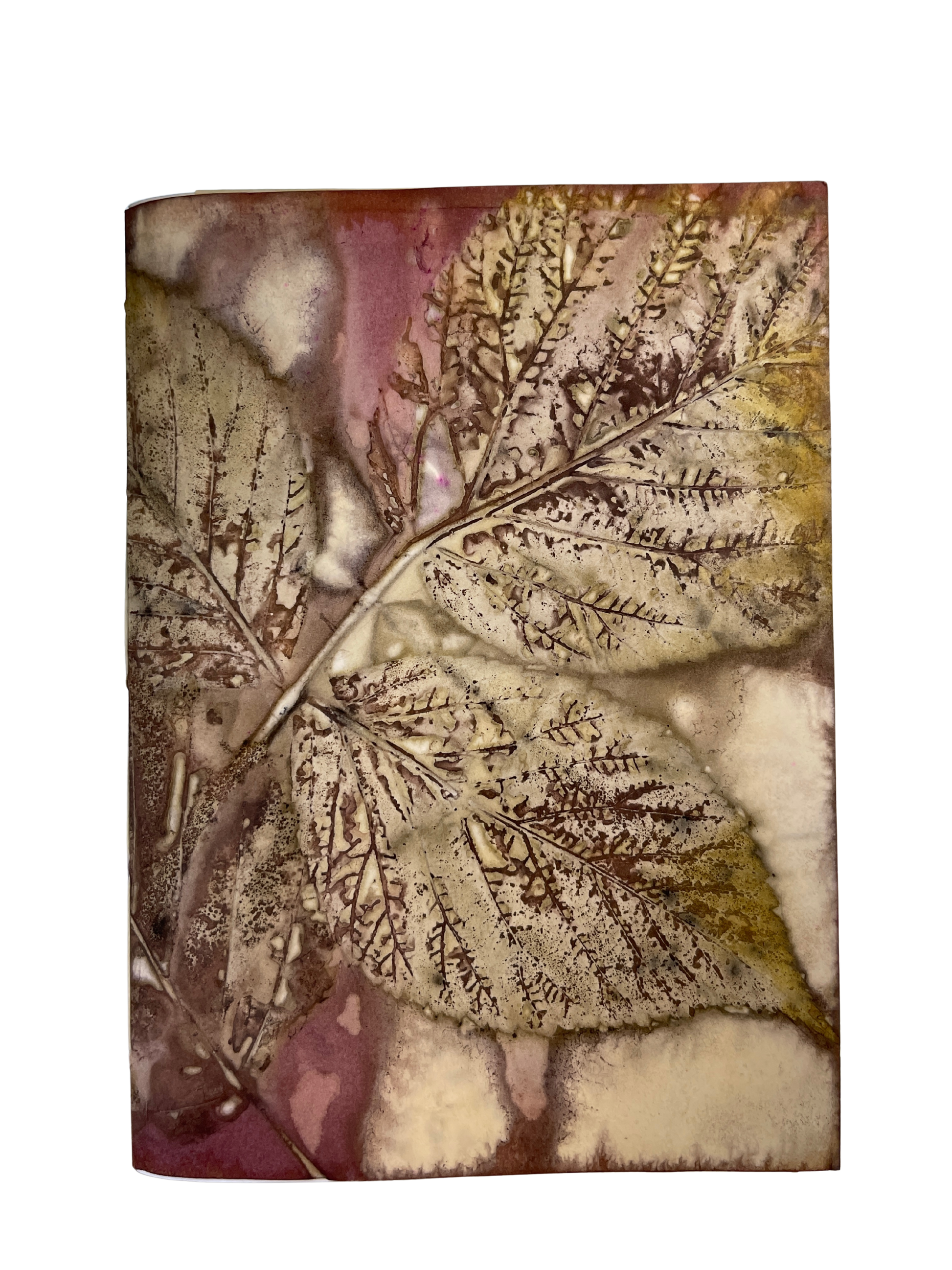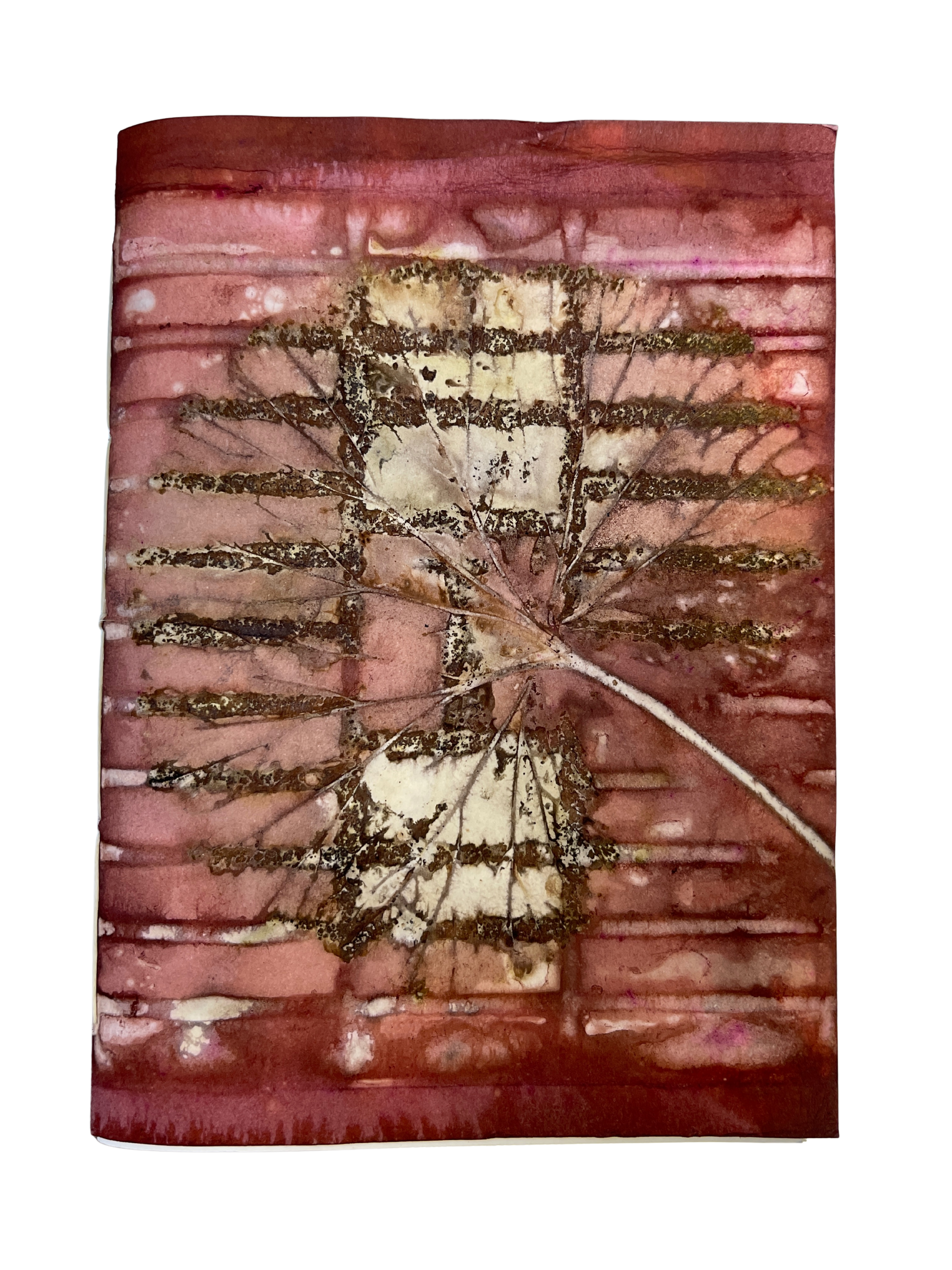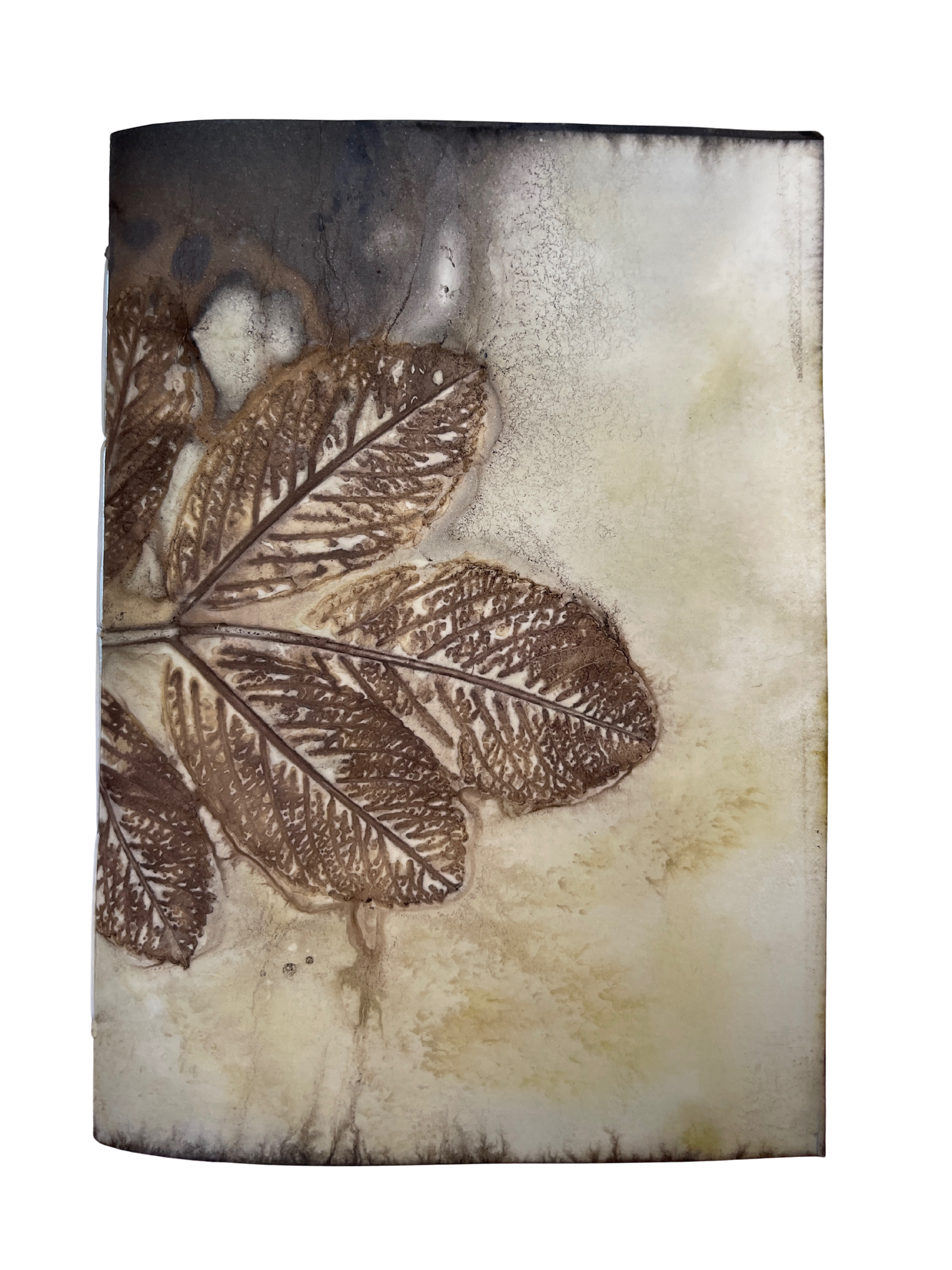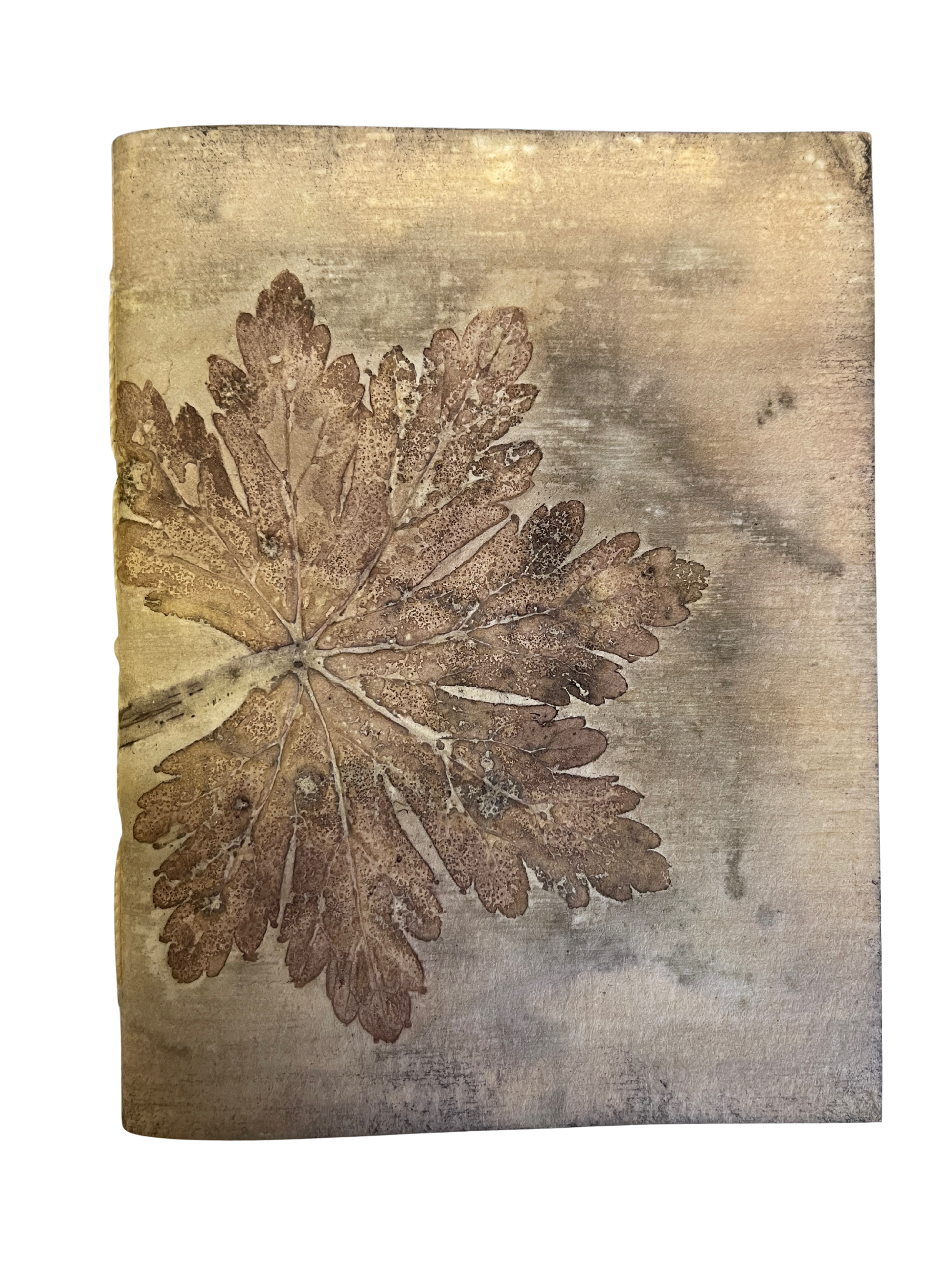 Each book cover is an original ecoprint using leaves from Cordova with a mix of natural dyes. The process is eco-friendly and unrepeatable, making each print unique and the book one-of-a-kind. Coptic stitch journals lay flat when open for easy writing.