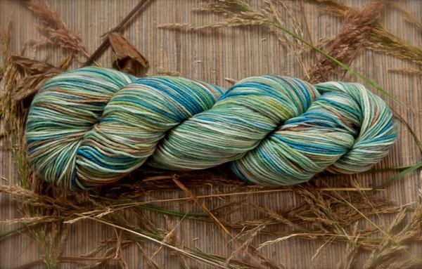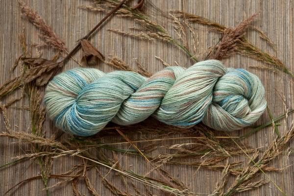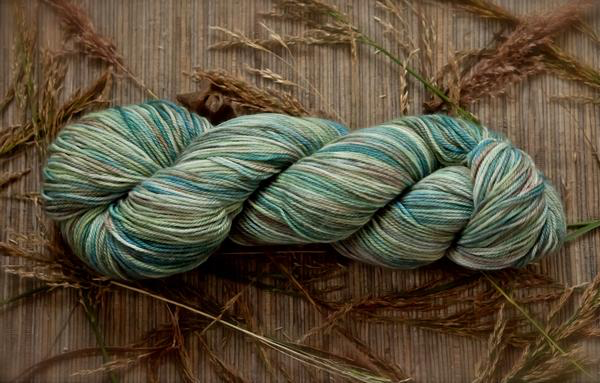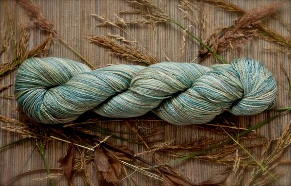 A lustrous blend of merino, bamboo, and nylon. Colorways dyed on this fingering weight yarn have a heathered, ethereal appearance.