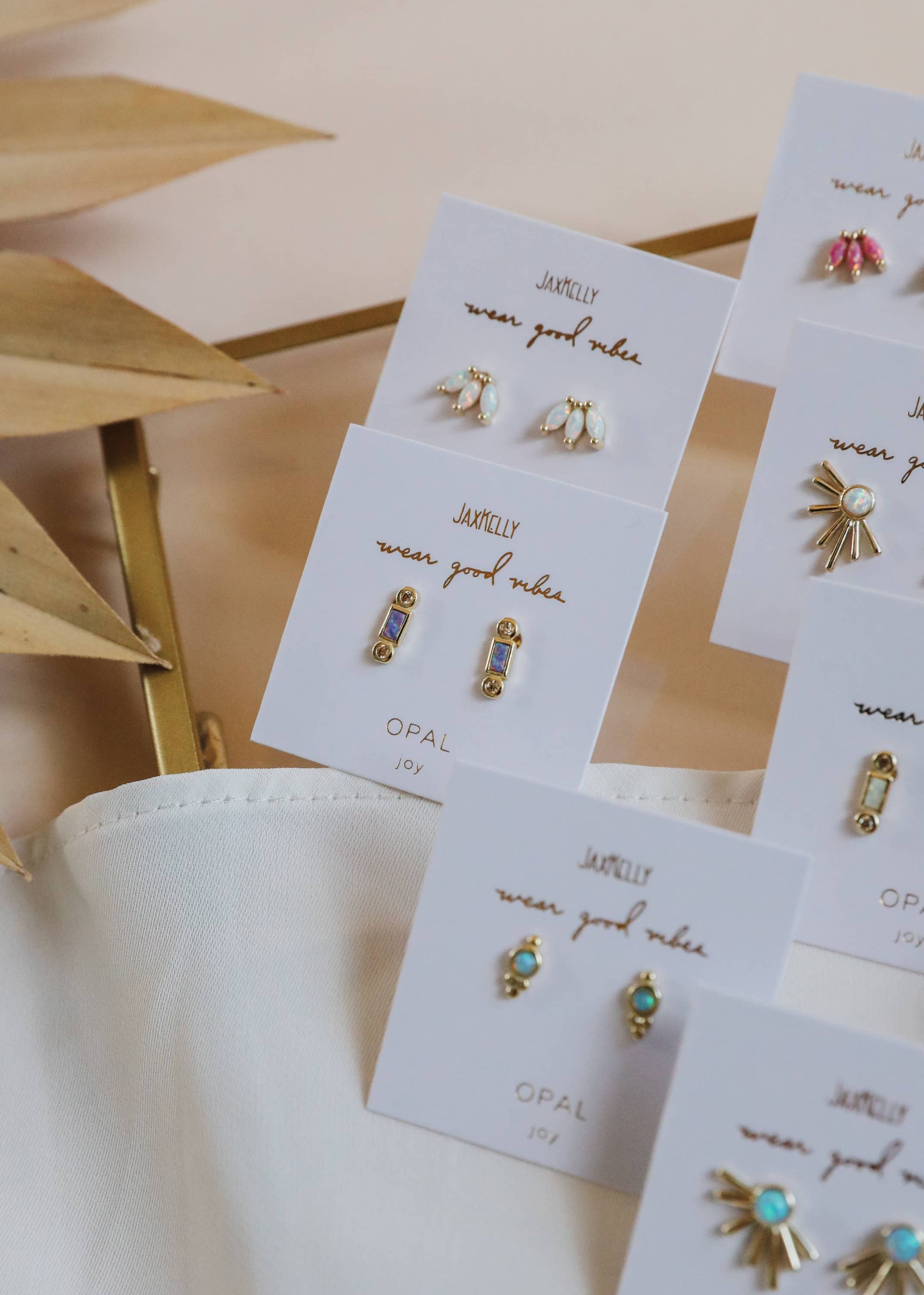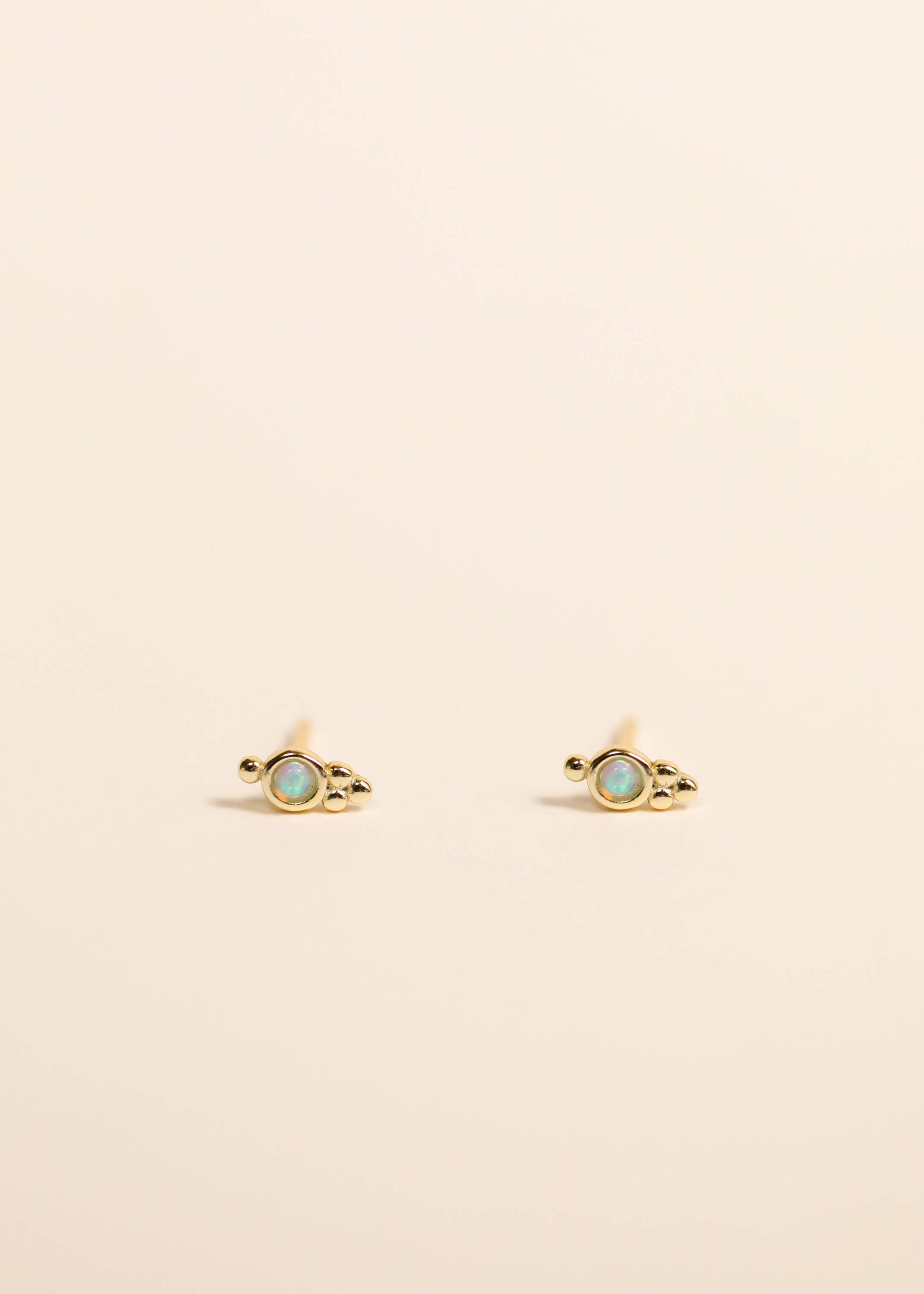 Tri Ball Studs - Fire Opal - Gold Earrings