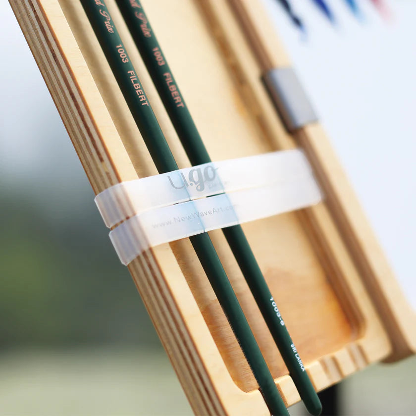 It holds the accessory side trays to the lid of your pochade box for compact storage during transportation, and secures brushes, tools, and medium cups to a side tray.