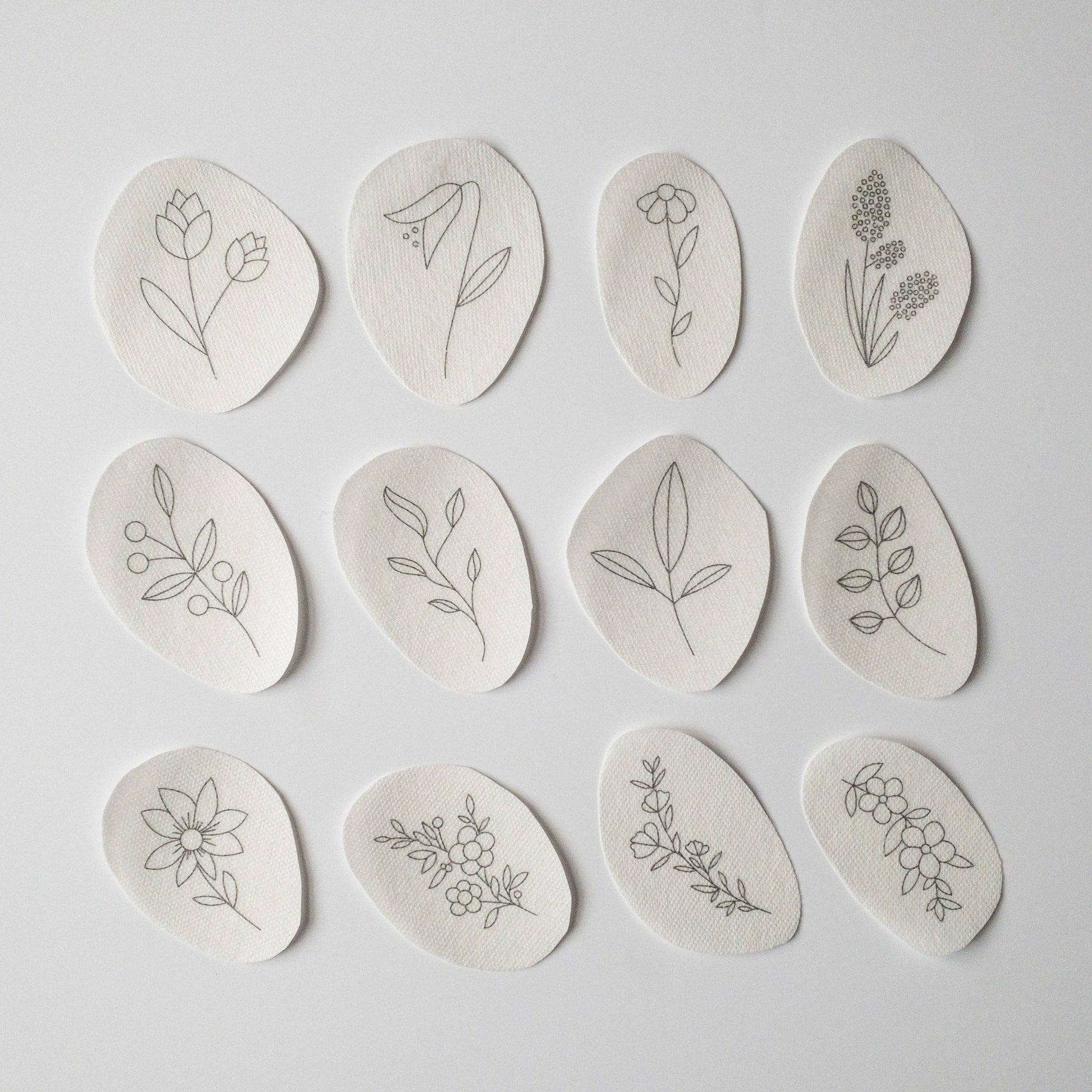 𝑷𝒓𝒆-𝑷𝒓𝒊𝒏𝒕𝒆𝒅, 𝑹𝒆𝒂𝒅𝒚-𝒕𝒐-𝑺𝒕𝒊𝒕𝒄𝒉 𝑬𝒎𝒃𝒓𝒐𝒊𝒅𝒆𝒓𝒚 𝑷𝒂𝒕𝒕𝒆𝒓𝒏𝒔 This pack of 12 single-use wildflower embroidery designs are printed on adhesive-backed, water-soluble transfer paper then trimmed by hand into small patches that can be applied to almost any fabric.