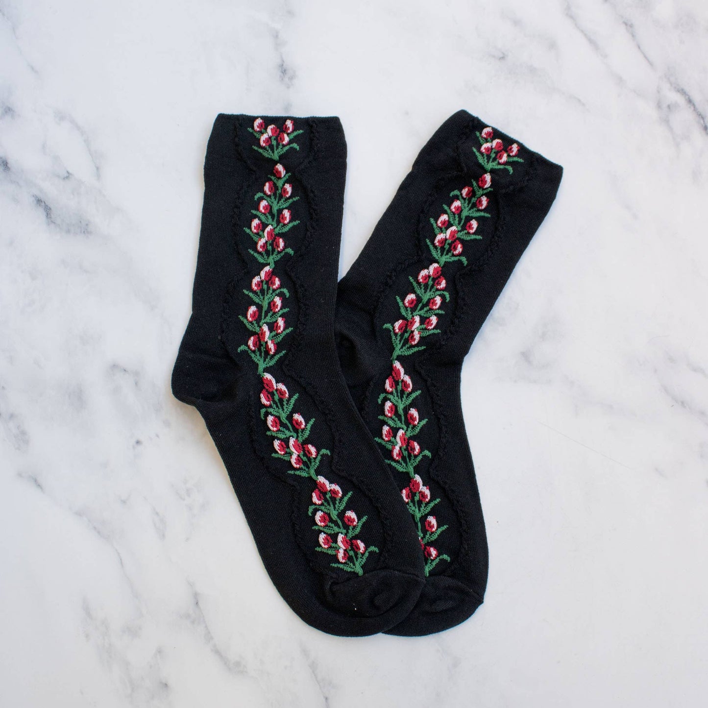 Introducing our Women's Antique Tulip Flower Socks, designed for comfort and with a vintage look. These socks are perfect for adding a touch of elegance to any outfit. Made with high-quality materials, they provide all-day comfort while offering a unique and timeless style.