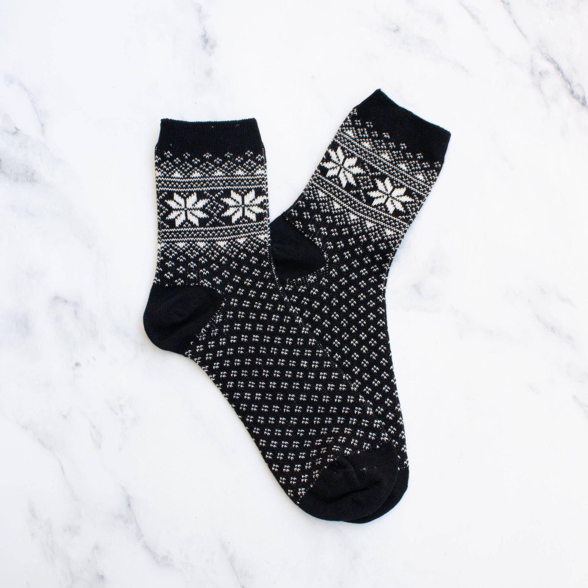 Introducing our Women's Snowflake-Motif Comfort Socks. Made with high-quality materials and a unique snowflake design, these socks offer ultimate comfort and style. With a soft and cushioned sole, your feet will stay warm and cozy all day long. Perfect for any winter outfit.